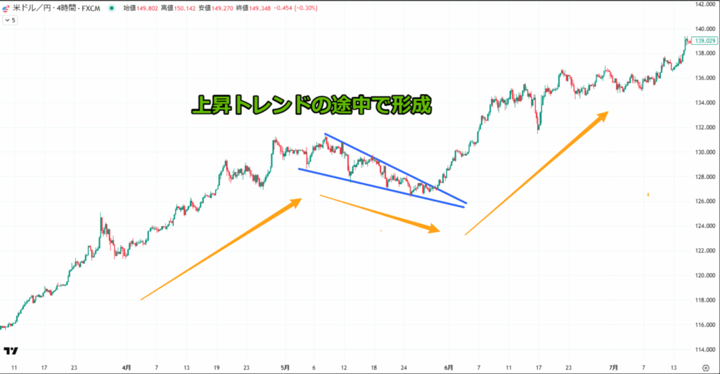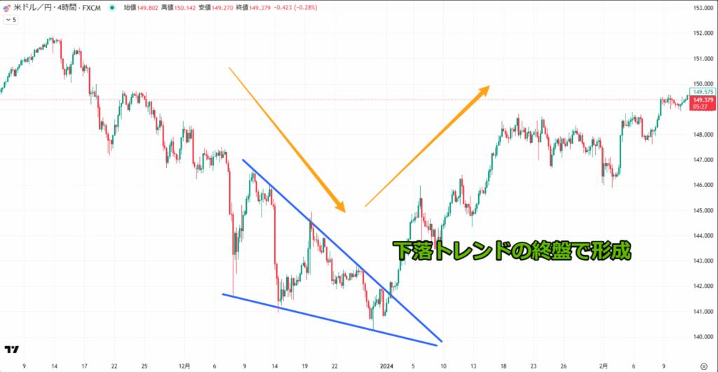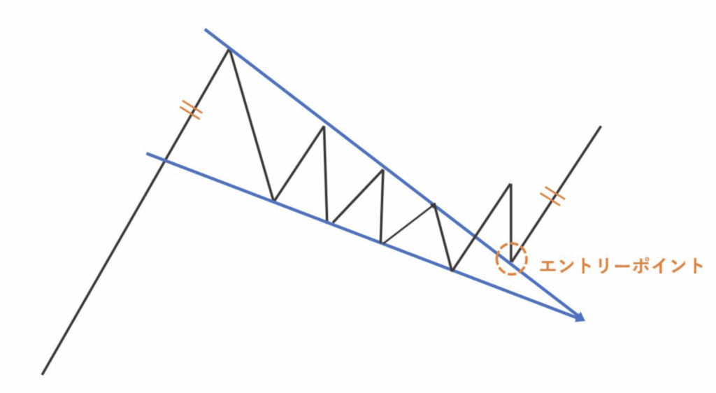 しかしチャートパターンの形が綺麗でないとトレーダーによって解釈が変わるので、失敗しやすい傾向にあります。